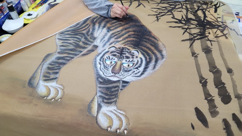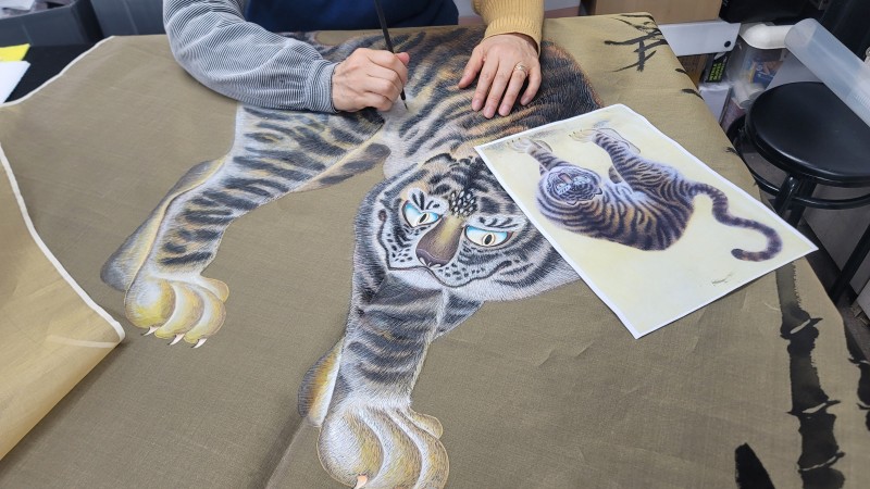 민화연구반 수강생분이 호랑이를 그리고 계세요